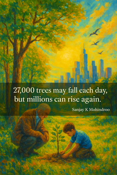 Yes, 27,000 trees are cut down each day. But here’s the promise: humanity has never been short on creativity, compassion, or courage. If we’ve built cities from scratch, sent satellites into orbit, and connected the globe, we can also grow forests where none stand.